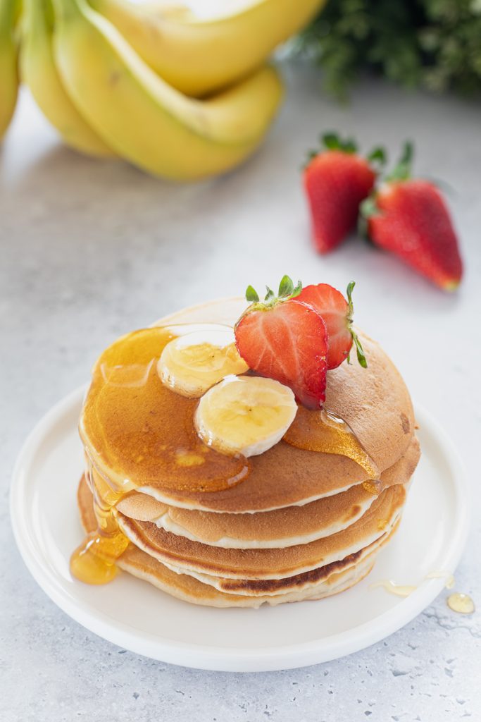 If instead you’re looking for the basic homemade fluffy pancakes recipe, you can start from this easy and quick batter: Fluffy pancakes: basic easy and quick homemade recipe, or if you want a butter-free version try our tall and fluffy pancakes without butter.