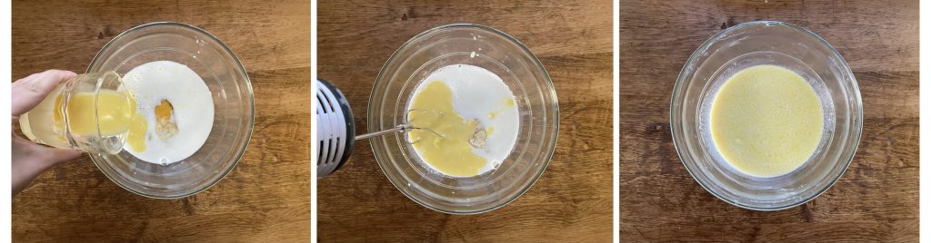 • Add the melted butter and mix with an electric whisk or by hand.