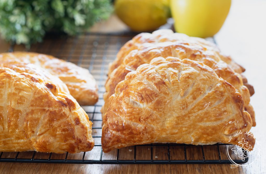 This summer, as in the last three years, we went on vacation in France and, as every year, I brought back 2 kg of extra flesh as a souvenir, which I wisely lost at home — and would you like to know how I did it? Not to lose, I mean, but to gain the 2 kg? By eating at least twice a day what I consider an absolute delight: the “chausson aux pommes” — the little puff pastry parcel filled with apples, with its characteristic shell shape! And since I adore this dessert (not too sweet — very much), I couldn’t help making it at home! So I tried the recipe and I assure you the result met or exceeded expectations. Want to try making them too? Then follow me in the kitchen: one of the best puff pastry and apple recipes there is — it only awaits us and you’ll see they are ready in no time!! Before running to the kitchen, remember that if you want to stay updated on all my recipes, you can follow my Facebook page (here) and my Instagram profile (here).