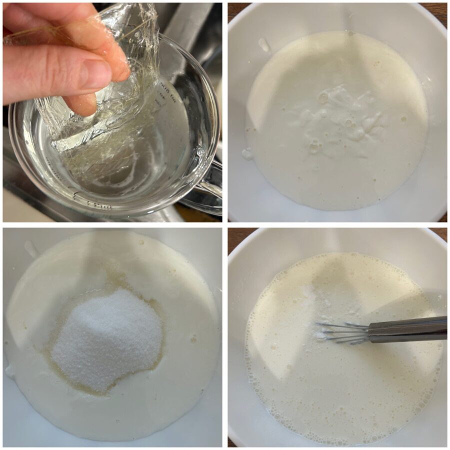 If you prefer, you can warm the cream in a saucepan over low heat without boiling and dissolve the squeezed gelatin directly there, mixing gently.
