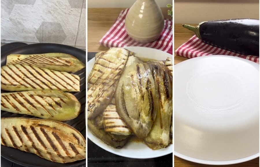 For this recipe I grilled the eggplants on the stovetop and then reheated them in the microwave to make them softer, but this is not a mandatory step. If you don’t have a microwave and still want very soft eggplants, you can grill them in the oven following the method I use in this recipe: Quick savory tart with puff pastry and eggplant.