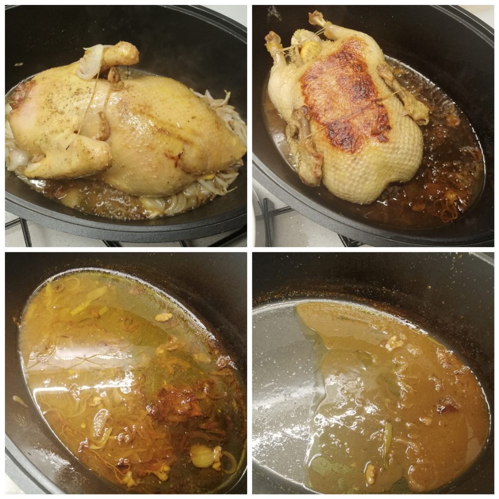 After this time you’ll see the duck roasting in its own fat; if needed add a little water and continue cooking.