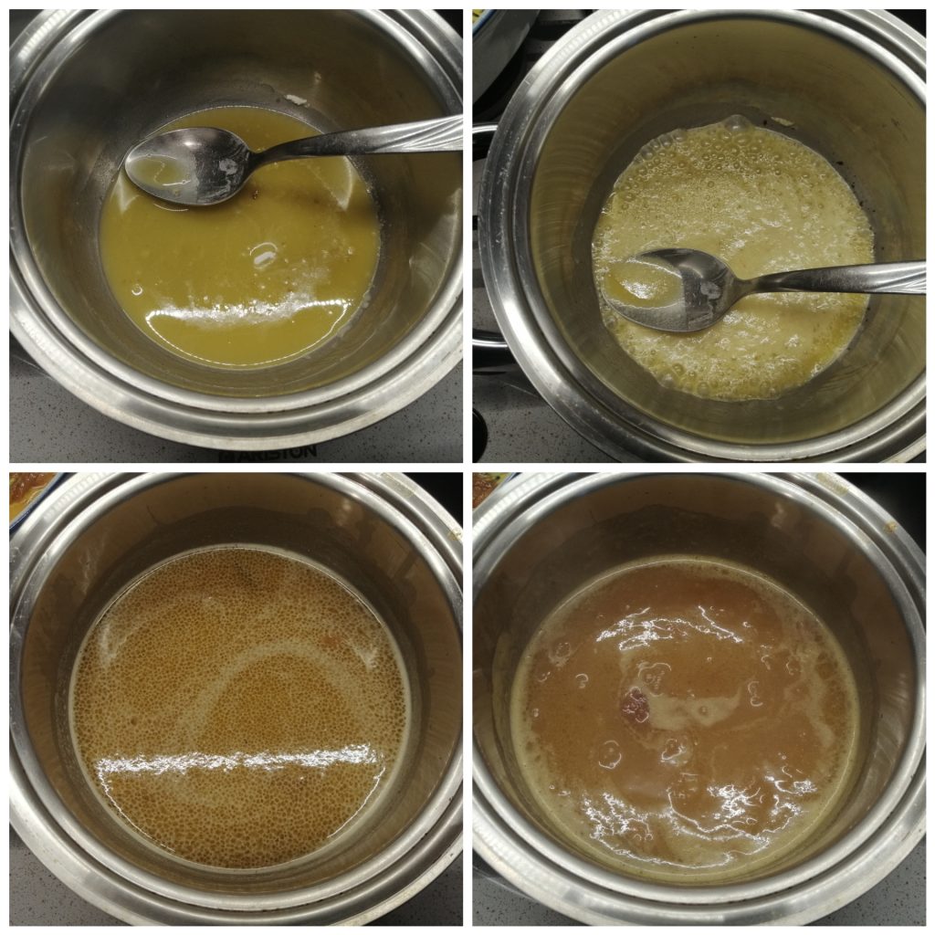 Take the cooking juices and separate the fat from the liquid base — the fat will float and can be easily poured off.