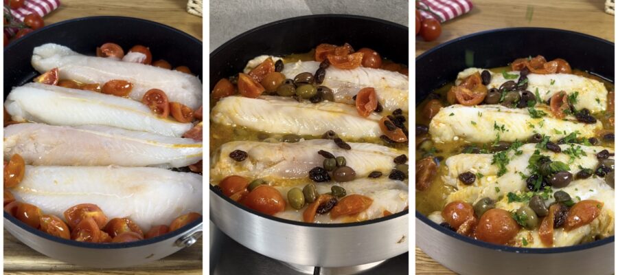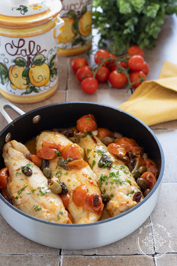 Let’s go to the kitchen now — the recipe for cod fillets with cherry tomatoes and olives awaits, but first I remind you that if you want to stay updated on all my other recipes, you can follow my Facebook page and my Instagram profile, and find many more in my book “La Sicilia è in tavola”.