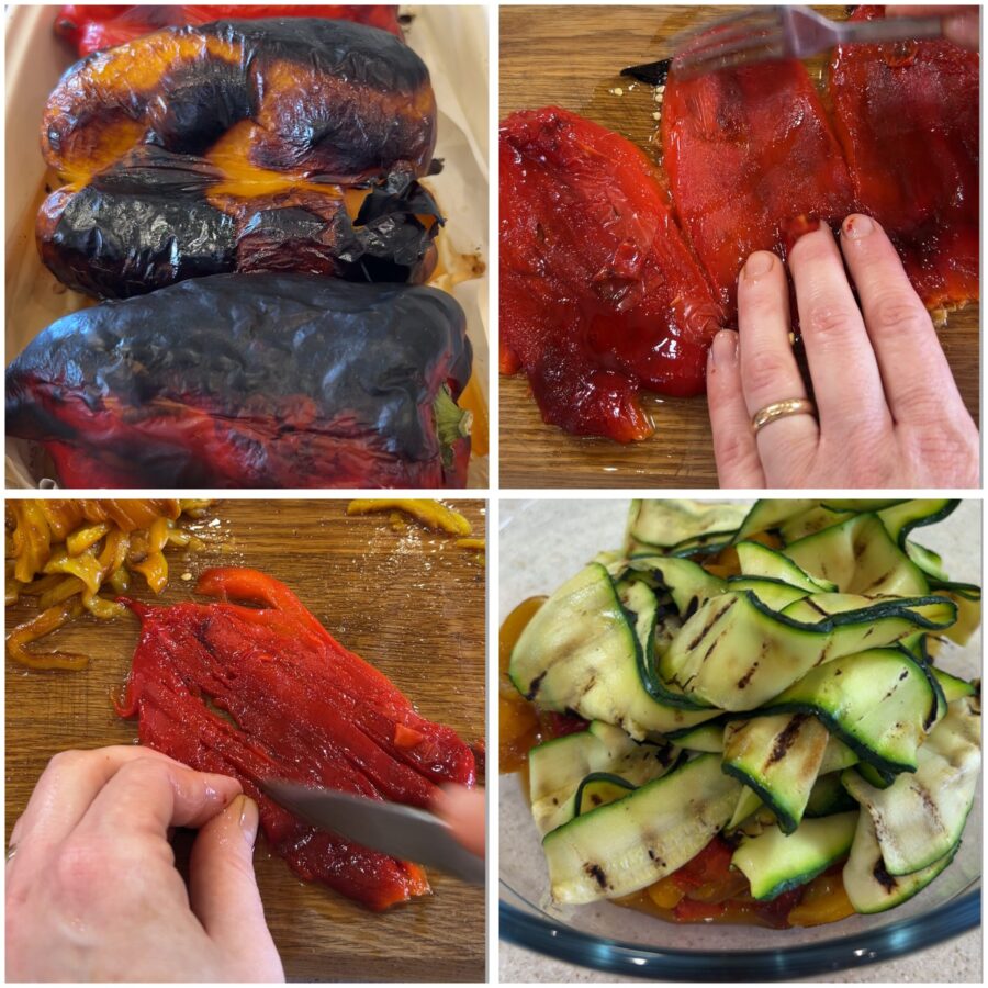 Preparation of the grilled zucchini, peppers and chickpea salad