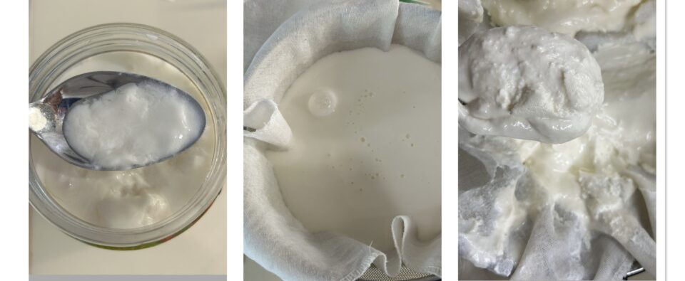 Finally, note that starting from 1 kg (about 2.2 lbs) of Greek yogurt you obtain roughly 500 g (about 1.1 lbs) of spreadable cheese, while starting from plain yogurt, which contains more water, the yield drops to around 300 g (about 0.7 lbs).