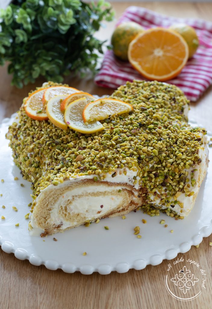 Quick Pandoro Yule Log, with pandoro and mascarpone. Are you looking for quick desserts using leftover pandoro and lack inspiration? Try this log with citrus mascarpone cream, no-bake, very easy and delicious — perfect for the holidays and also great afterwards, when leftover pandori need to be eaten before Easter. Surely after the holidays and why not, even during them, we’re all looking for fun ideas to transform or recycle pandoro, tasty and easy recipes to reuse the famous traditional cake or simply turn it into something different and more showy. For example, I made this easy and quick dessert with pandoro: a log filled with a very simple citrus mascarpone cream, a decorative dessert perfect for the holidays and beyond, maybe for a cold Sunday in January when you don’t feel like turning on the oven but really want to enjoy a good family dessert. Let’s go to the kitchen now, but before rolling up our sleeves I remind you that if you want to stay updated on new recipes you can follow my Facebook page and my Instagram profile.