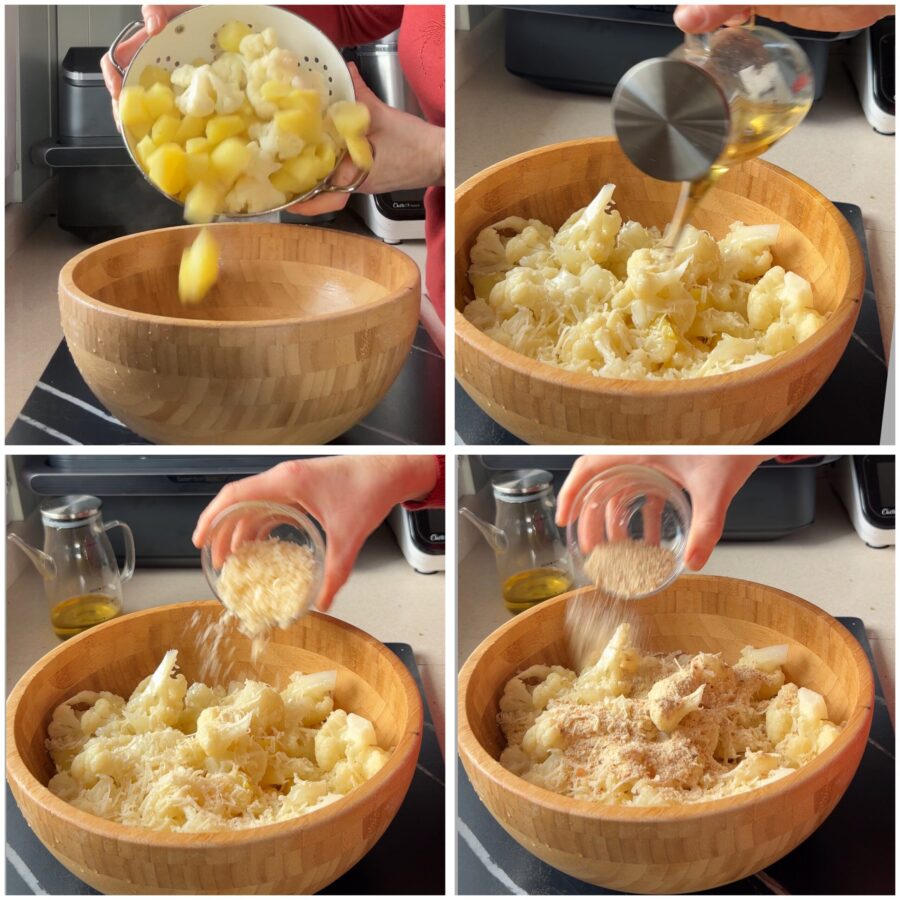 For an optimal result, it is important not to overcook the cauliflower and potatoes during parboiling: they should be tender but still firm enough to keep their texture after baking. Also be sure to remove excess water carefully to avoid a watery dish.