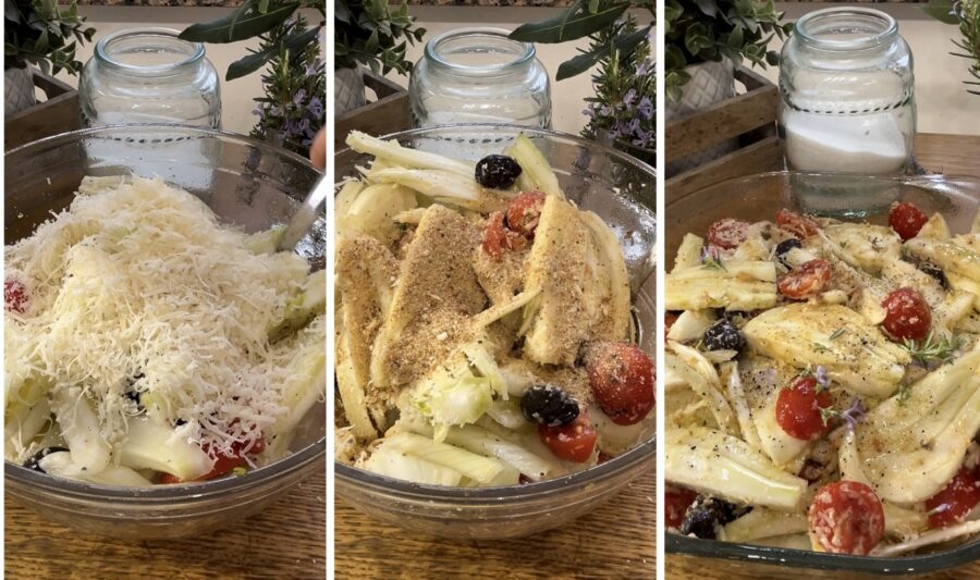 Fennel is a typical vegetable of the Mediterranean diet, rich in fiber and with digestive properties, perfect to enjoy baked with cherry tomatoes and olives. This recipe is completely vegetarian, just like the recipe for Mediterranean fennel in a pan or fennel en papillote. It is perfect to accompany a simple, homely rustic dinner, it’s really delicious and even if you normally don’t like cooked fennel, I’m sure this version will make you love it too. To make Mediterranean gratinated baked fennel, simply slice the cleaned fennel and flavor it with olives, cherry tomatoes, grated cheese, salt, oil, pepper and breadcrumbs. After a good mix and a trip to the oven, they will be ready to enjoy hot, at room temperature or even the next day and let’s not forget that fennel is a detox food that helps us stay in shape without giving up flavor. But let’s go to the kitchen, I’ll explain the recipe step by step. Before that, if you want to stay updated on all my recipes, you can follow my Facebook page (here) and my Instagram profile (here).