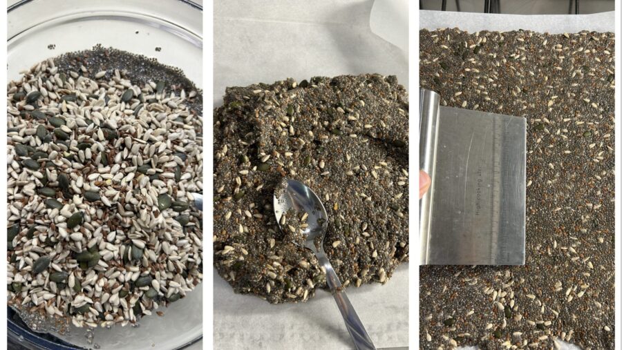 The mixed seed crackers, once completely dry, can be kept for weeks (I stored them for a month) in sealed food bags or airtight containers.