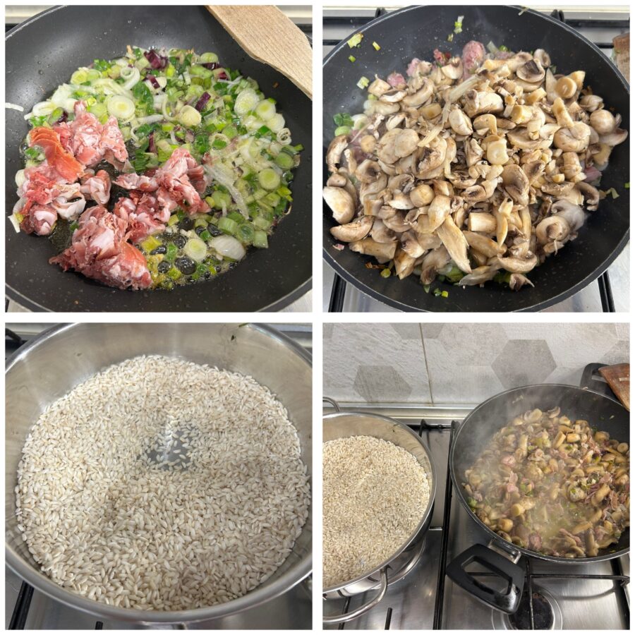 Preparation of creamy Mushroom and Speck Risotto