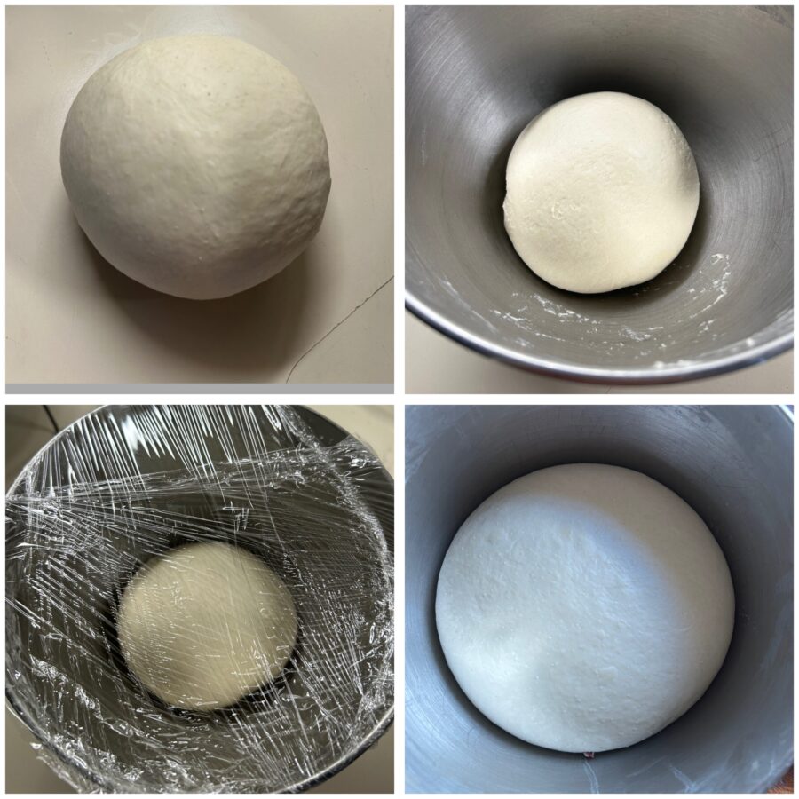 Transfer the dough to a work surface and shape it into a smooth ball. Place it in a lightly oiled bowl, cover with plastic wrap and let it rise in a warm place until doubled in size.
