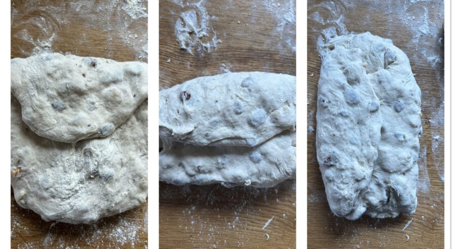 Perform the well-known three-folds (the ‘three folds’). Do the same with the other half of the dough.