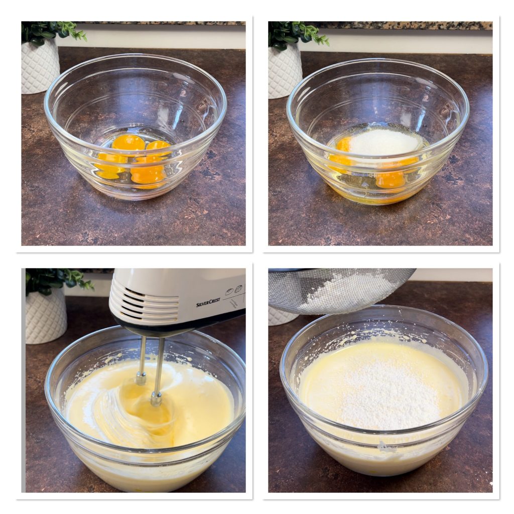In the real Pan di Spagna there is no baking powder, but as I mentioned, since I don’t like risks and I don’t want to waste the ingredients I use, I always add a little: 1/2 packet of baking powder for 5-6 eggs; for smaller quantities I use teaspoons: 1 teaspoon for 2-3 eggs, 1 1/2 teaspoons for 4 eggs.