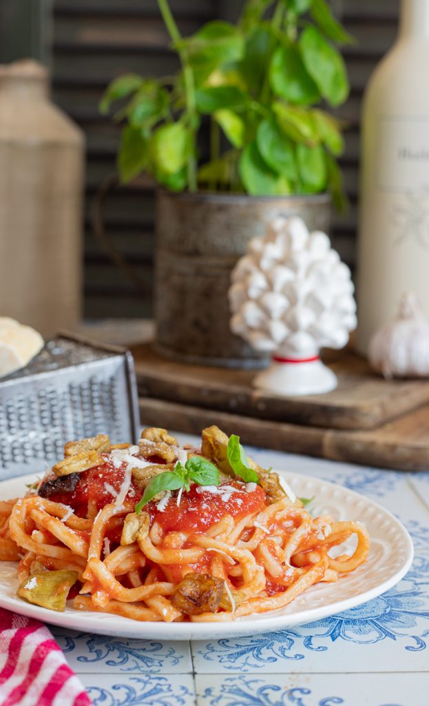 • If you happen to have leftover Pasta alla Norma, store it in the fridge for up to 24 hours. Before eating, put it in a heavy-bottomed pan, add a generous drizzle of oil and heat over high heat, stirring occasionally. When it has browned and formed a golden crust on the surface, you can plate it — you’ll see that the pasta “cca sassa fritta” (with the sauce) will be delicious!