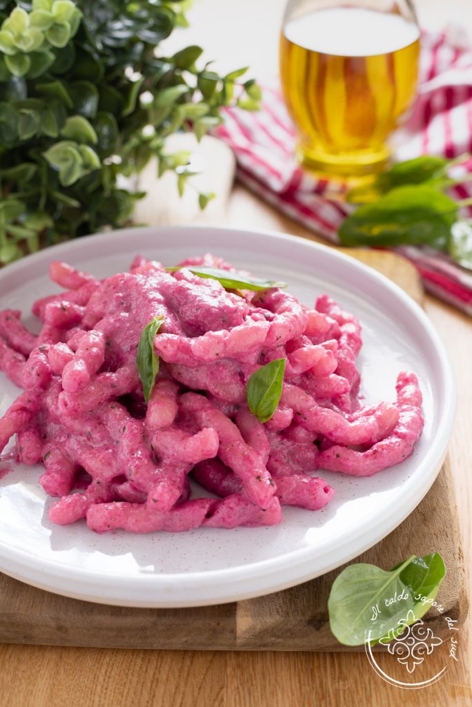 Pasta with beetroot and almond pesto or with beetroot cream. We have made so many pestos that I’ve lost count, and beetroot pesto was missing from the lineup, so I decided to make it and dress these beautiful amaranth-colored busiate. Beetroot pesto, with its delicate, slightly sweet and very fragrant flavor, is a condiment adored not only by grown-ups but also by kids. How do you make such a pretty and original-tasting pesto? Simple — just follow this indulgent recipe, which will transform a simple first course into a dish that will astonish everyone! Ready to discover how to make pasta with beetroot cream or pesto? Let’s go to the kitchen, but before you rush to the stove, remember that if you want to stay updated on new recipes you can follow my Facebook page and my Instagram profile.