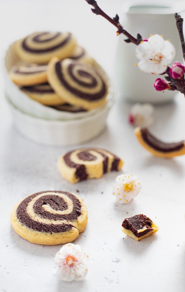 Pinwheel cookies recipe — grandmother’s recipe or swirl cookies. Two different shortcrust doughs, one with vanilla and one with cocoa, which together give us two-tone cookies pinwheels with a lovely and mouthwatering optical effect that’s hard to resist. An easy recipe for breakfast cookies suitable for adults and children, also great for an afternoon snack!! Today I’ll explain how to prepare pinwheel or swirl cookies, the delicious bicolor shortbread cookies vanilla and chocolate, compact, crunchy, aromatic and ideal for dunking in milk and even coffee. Homemade cookies that will make your children’s breakfasts joyful, wholesome and delicious, perhaps paired with a homemade ACE juice or some kefir yogurt or homemade Greek yogurt! Ready to discover how to make these vanilla and cocoa two-tone cookies? You’ll love sharing them with the whole family!! Roll up your sleeves, and before you get your hands in the dough I suggest you also try the butter-free chocolate cookies and the grandma’s chocolate cookies. If you want to stay updated on new recipes you can follow my page Facebook and my profile Instagram.