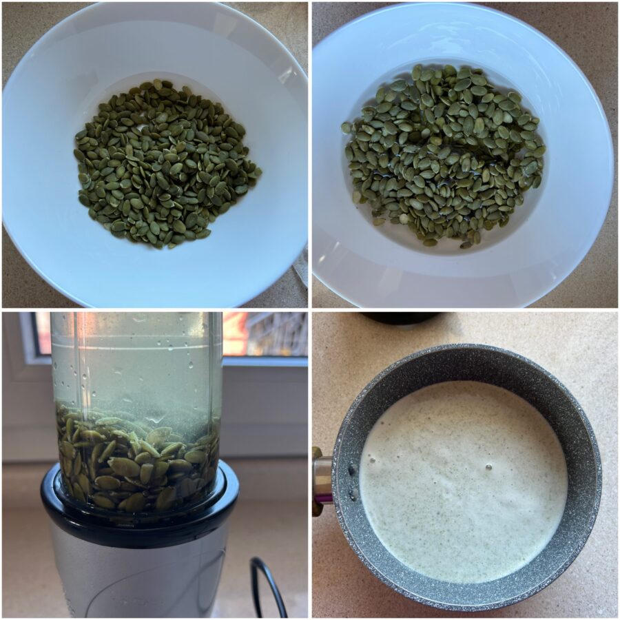 Steps to make plant-based cheese with pumpkin seeds