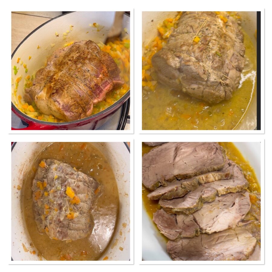 Return the roast to the pot, let it rest for 30 minutes in a warm place, then slice and serve with its sauce.