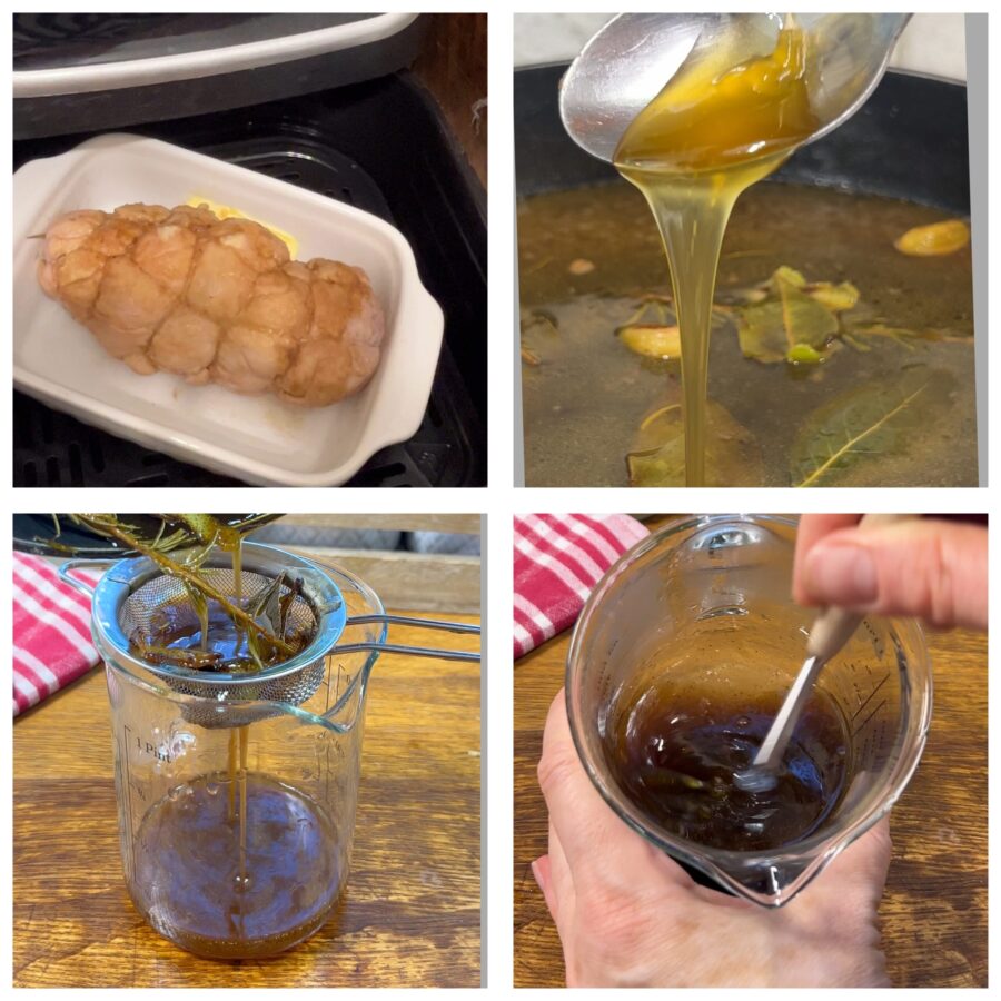 After 5 minutes, transfer the tenderloin to a small baking dish, add the remaining butter and cook in a static oven at 356°F (180°C) for 20–25 minutes or in an air fryer for 20 minutes at 338°F (170°C). Meanwhile add the honey and lemon juice to the pan juices and let reduce until you obtain a thick sauce (that coats a spoon). Strain through a sieve, whisk with a whisk or a fork and set aside.