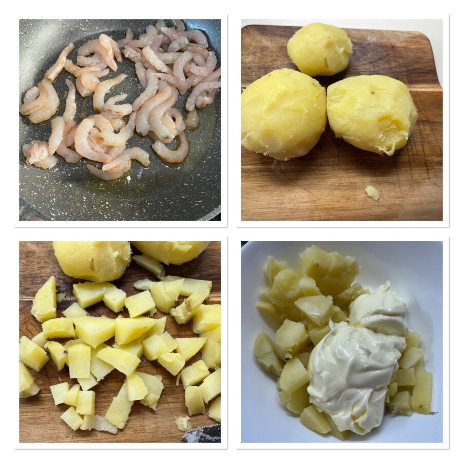 Ingredients to make Potato and Shrimp Salad with Mayonnaise