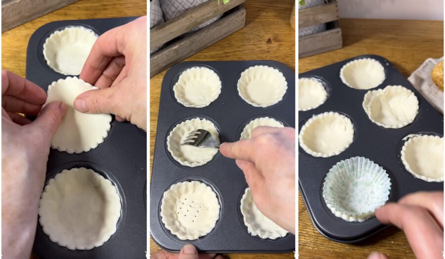 Bake in a preheated conventional oven at 392°F for 15 minutes or until golden. If you don’t have ceramic or steel baking beads, the pastry will puff up during baking and you’ll need to hollow it out with the help of a knife (see photo).