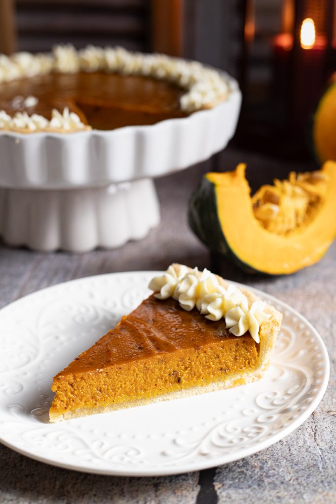 Once ready, the pumpkin pie will keep in the fridge for 2–3 days, covered with plastic wrap.