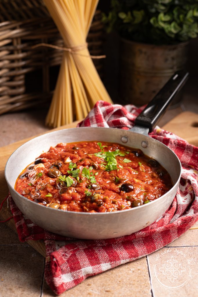 The origin of puttanesca sauce is disputed between Naples and Sicily. In both cases it was born as a popular, quick dish made with few ingredients but with an intense flavor typical of Mediterranean cuisine.