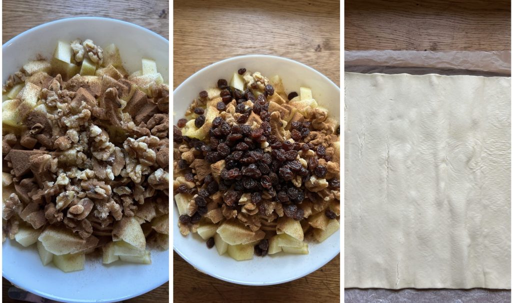 Let’s go to the kitchen — you’ll see that for this strudel we’ll use two rolls of puff pastry so the apple, cinnamon and raisin filling can be well contained. The recipe is super easy and quick! As always, before we start cooking, if you want to stay updated on all my recipes you can follow my Facebook page (here) and my Instagram profile (here).