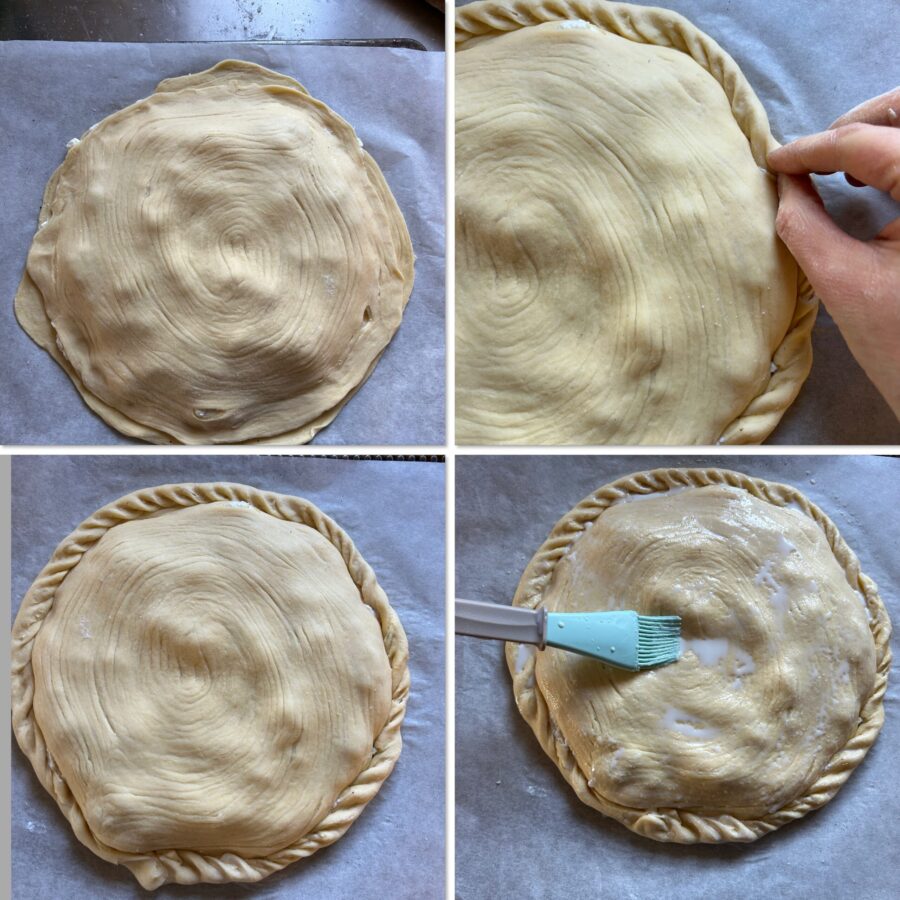 Seal the edges and then create the “u rieficu” (the rim) by folding the edges of the discs inward.