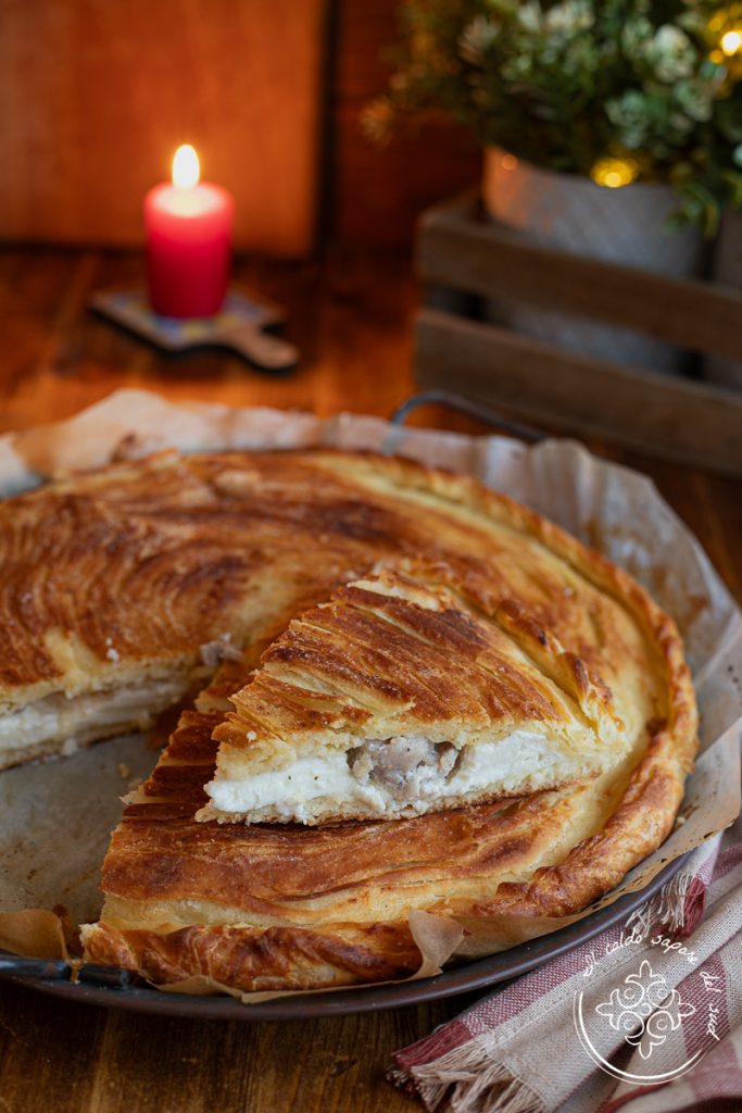 The Christmas dish of Ragusa is the unavoidable sfuogghiu made with ricotta and sausage, a dish that is part of Sicilian cuisine and grandmother’s recipes and an ideal preparation to enrich the holiday menu if you don’t know what to cook for Christmas and New Year’s Eve. “U sfuogghiu ragusano with sausage and ricotta” is one of the oldest and most representative savory pastries of the province of Ragusa together with the Scaccia ragusana in its many variants, and many other dishes that are part of the rich peasant tradition of the Iblei area, such as the Cucciddatu scaniatu of Scicli. A Sicilian dish with an intense flavor and a particular texture given by the peculiar layering using lard, different from traditional puff pastry, it wins you over at the first bite and has its roots in the humble recipes of grandmothers. This savory pie, prepared with a thin, crisp, and very simple-to-make layered dough, contains a filling rich in fresh sausage, ricotta, marjoram and black pepper and is a true symbol of Sicilian home cooking.
