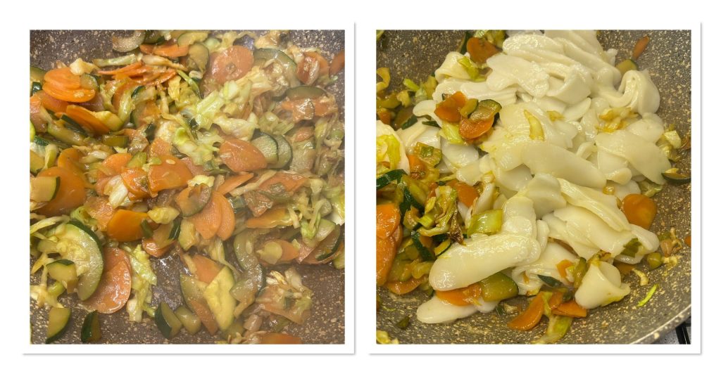 Rice gnocchi with vegetables are versatile and can be customized with ingredients you have at home, while always maintaining the soft and slightly chewy texture typical of Chinese rice gnocchi stir-fried in a pan.