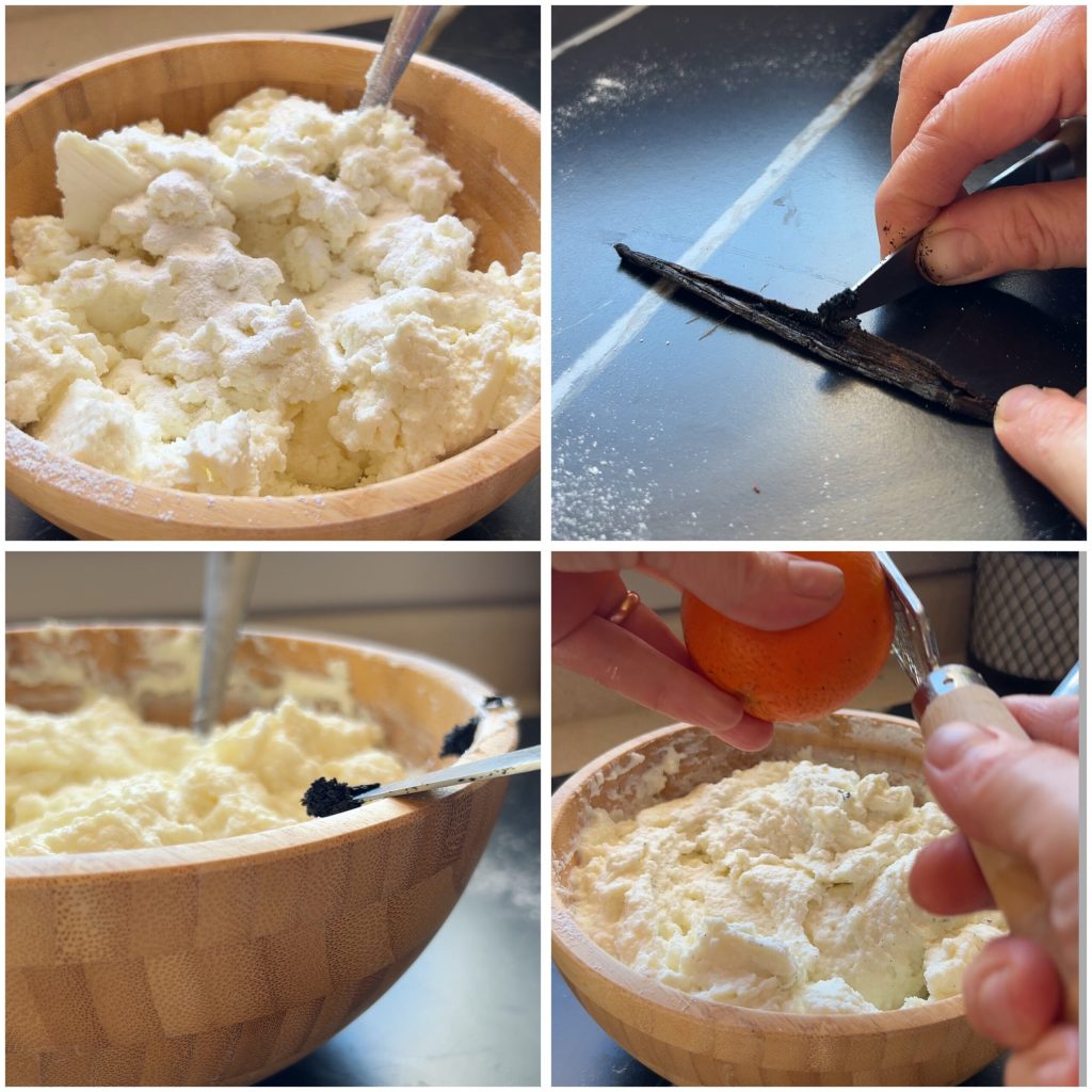 Split the vanilla pod, scrape out the seeds and add them to the ricotta.