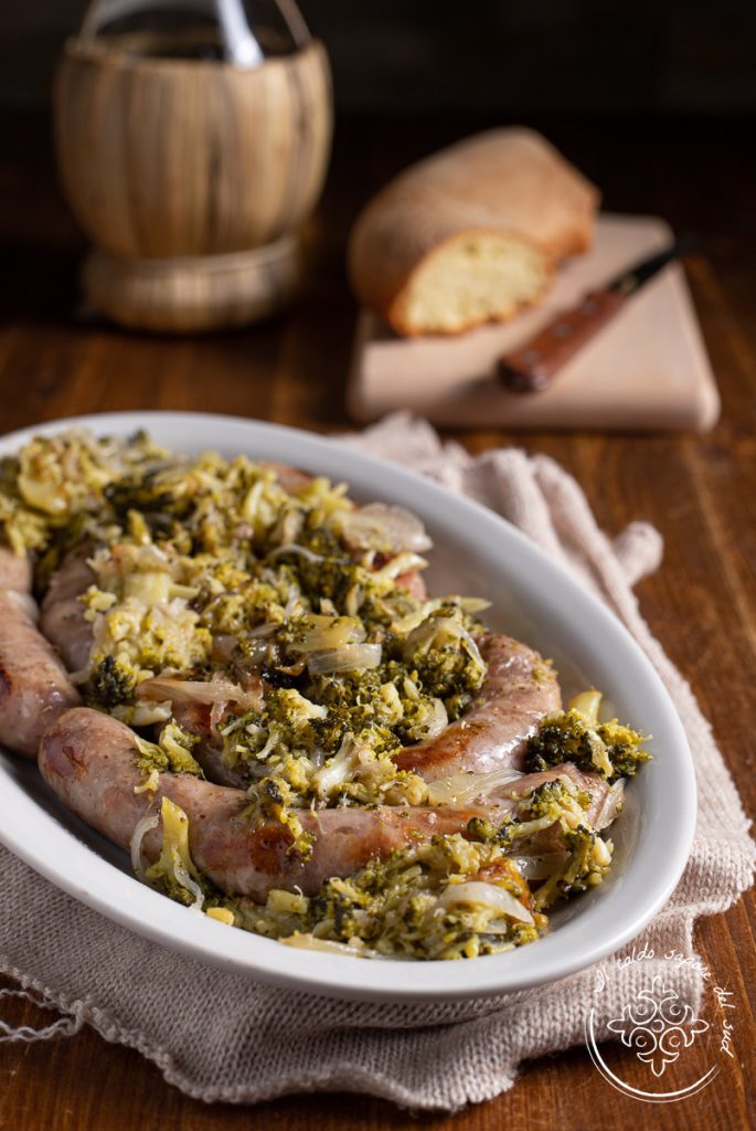 Traditional Catanese recipe: sausage and braised (affogati) broccoli, a humble and characteristic dish of Sicilian cuisine. A few ingredients and slow cooking give us a very distinctive, tasty dish. Ideal to prepare during winter as a rustic and appetizing starter, but also as a main course to serve at lunch or dinner. Braised broccoli with sausage, which are a must at Christmas dinners, owe their name to the particular cooking method. Tradition holds that they are cooked covered and “suffocated” with a plate, slowly stewing without ever being turned, just as it was done in the past when food was cooked on the stove. Cooking this way traps the aromas and juices of the sausage and broccoli in the pot, giving an incredible flavor to the finished dish. Ready to run to the kitchen and try them with me? Here is the recipe, but before you rush to the stove remember that if you want to keep up with my recipes you can follow my Facebook page (here) and my Instagram profile (here).