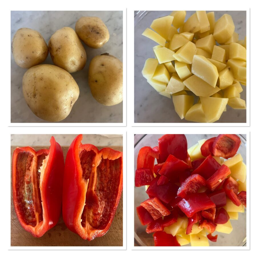 Sausage with potatoes, peppers and onions — a perfect combination for a delicious rustic main course: don’t you think? When I prepare it at home it’s always a celebration; both my husband and my children love it, so in summer I often cook it for dinner. I prepare the sausage with peppers and potatoes using the oven, but when it’s particularly hot I prefer to use the air fryer, which I place outdoors on the terrace to avoid heating my kitchen too much. The preparation is almost identical to that used in a conventional oven and the result is just as delicious. If you want to make this dish too, just follow me in the kitchen — I’ll tell you how to do it. If you’d like to stay updated on all my recipes, you can follow my Facebook page (here) and my Instagram profile (here).