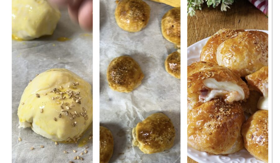 • Place the pastries on a baking sheet lined with parchment paper and brush with beaten egg,
