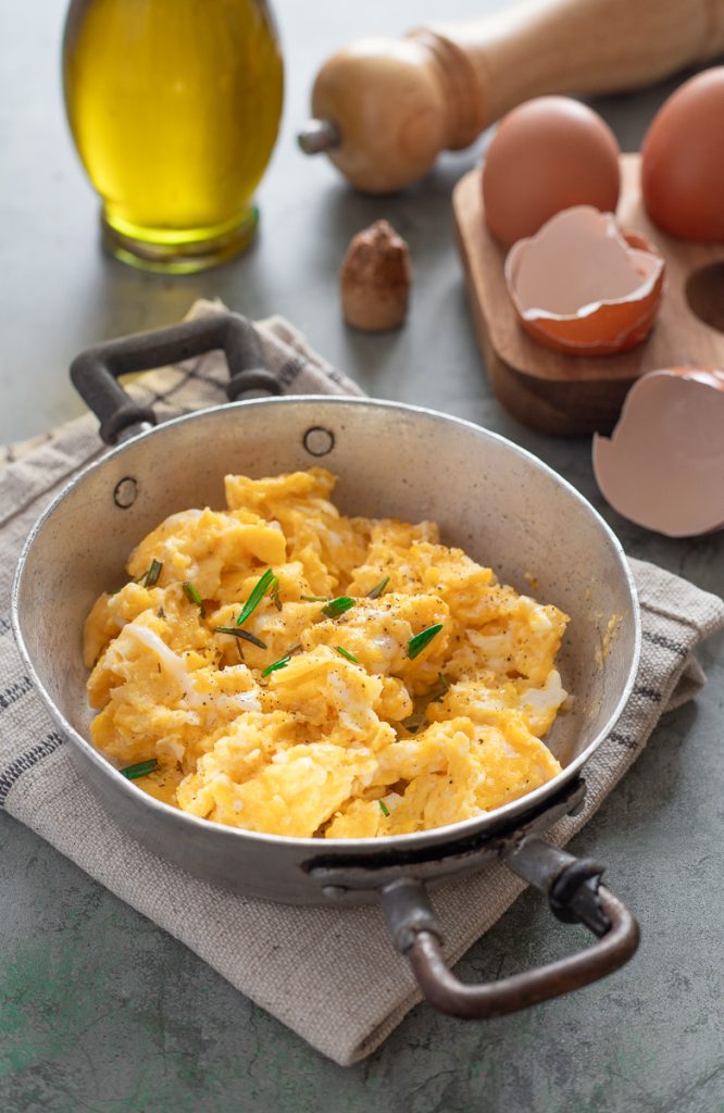 Scrambled eggs are one of the simplest and quickest recipes there is, and preparing them is really child’s play. Simply break the eggs into a bowl and beat them roughly with salt and a pinch of pepper if you like, then cook. To cook scrambled eggs, melt a little clarified butter in a skillet or heat a drizzle of oil. Pour in the beaten eggs and cook for one or two minutes, depending on how set you want them, stirring often. If you like them a bit creamy, as soon as they reach the desired texture transfer them immediately from the skillet to a plate. Scrambled eggs are ready to be enjoyed, hot and freshly made.