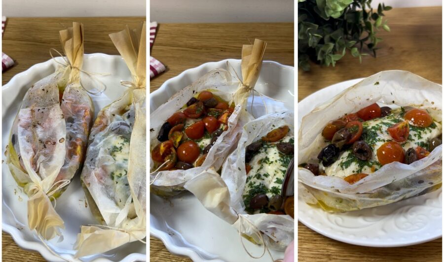 Sea bream fillet baked in parchment: an easy and quick fish main course that you can serve in single-portion parchment paper boats. Whether it’s caught at sea or farmed, sea bream can be prepared in many ways, such as Lemon sea bream in a pan or Oven-baked sea bream with orange, not to mention Sea bream baked with potatoes and white wine and much more. But if you have sea bream fillets, how to cook them? Today I will explain how to cook sea bream fillets en papillote with an easy and quick recipe, suitable for anyone and that you can use for any type of fish fillets you have available, even frozen sea bream fillets, frozen or fresh cod fillets or even oily fish like mackerel, jackknife fish and many others. To make it you’ll need cherry tomatoes, olives, a pinch of garlic, salt, oil and a little white wine. The recipe assembles in ten minutes and cooks in ten minutes, so in no time your fish is ready to be served and remains very tender and flavorful. Ready to discover together how to cook sea bream fillets in parchment, perfect to enrich our ideas for a fish-based menu? Let’s go straight to the kitchen, but first I remind you that