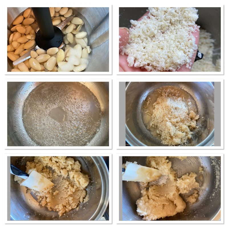 Mix the ground almonds into the syrup and return to the heat for about one minute.