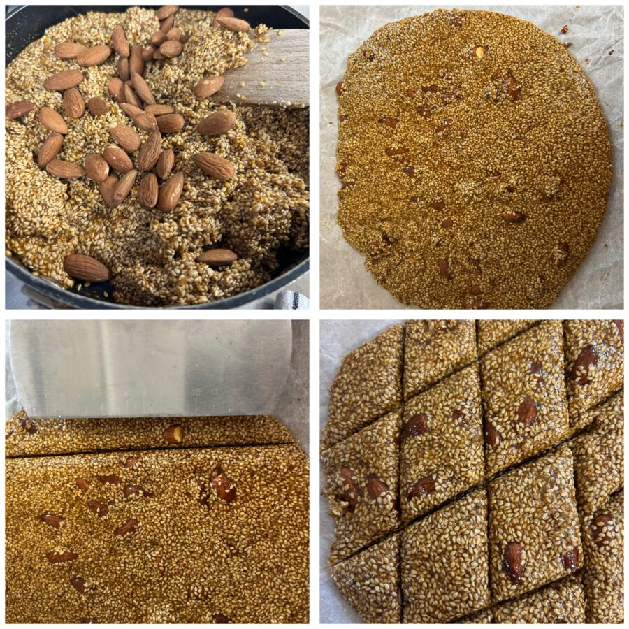 Preparing this ancient sesame torrone recipe at home means rediscovering the authentic flavors of Sicilian tradition, the same you also find in other sesame-based preparations such as my Sicilian Mafalde covered in sesame, the reginella sesame cookies or the typical Sicilian sesame breadsticks. If you’re looking for the easy cubbaita recipe or want to make an authentic homemade Sicilian torrone, this sesame and caramelized almonds preparation will bring a true ancient Sicilian sweet to your table, perfect in the colder months but traditionally linked to autumn, St. Martin’s Day and local Sicilian festivals.
