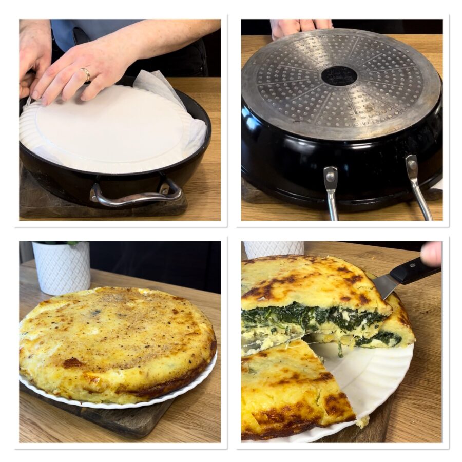 Steps to make the Skillet Potato Cake with Spinach and Mozzarella