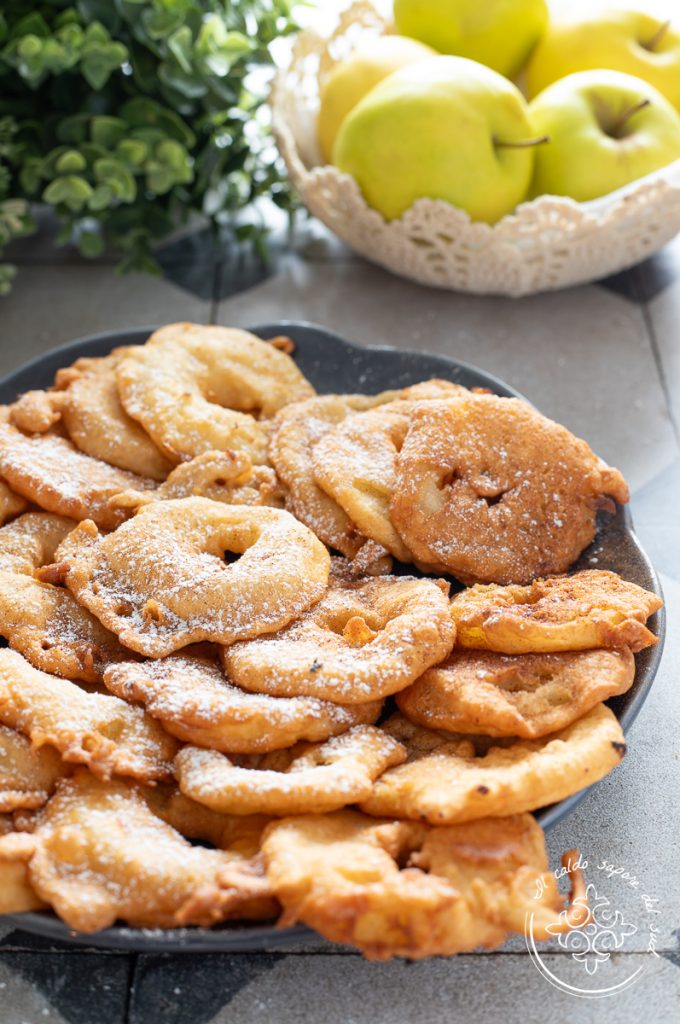 Grandma’s apple fritters recipe — or rather my Trentino grandmother’s, who also made a wonderful apple cake and apple desserts. The super quick apple fritters, in batter, soft and indulgent are an economical and wholesome dessert and can be an ideal snack to prepare in just a few minutes. They can also be part of an original breakfast. These little treats are easy to make because the apple fritters recipe is really very quick and requires few ingredients, like apple and jam puff pastries or the apple braid with puff pastry.