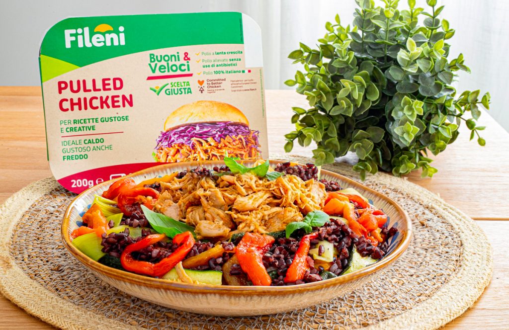 Quick dishes, yes, but able to tell the love and passion for good things, those prepared with care. Just like the Fileni pulled chicken, already cooked, shredded and seasoned with natural ingredients.