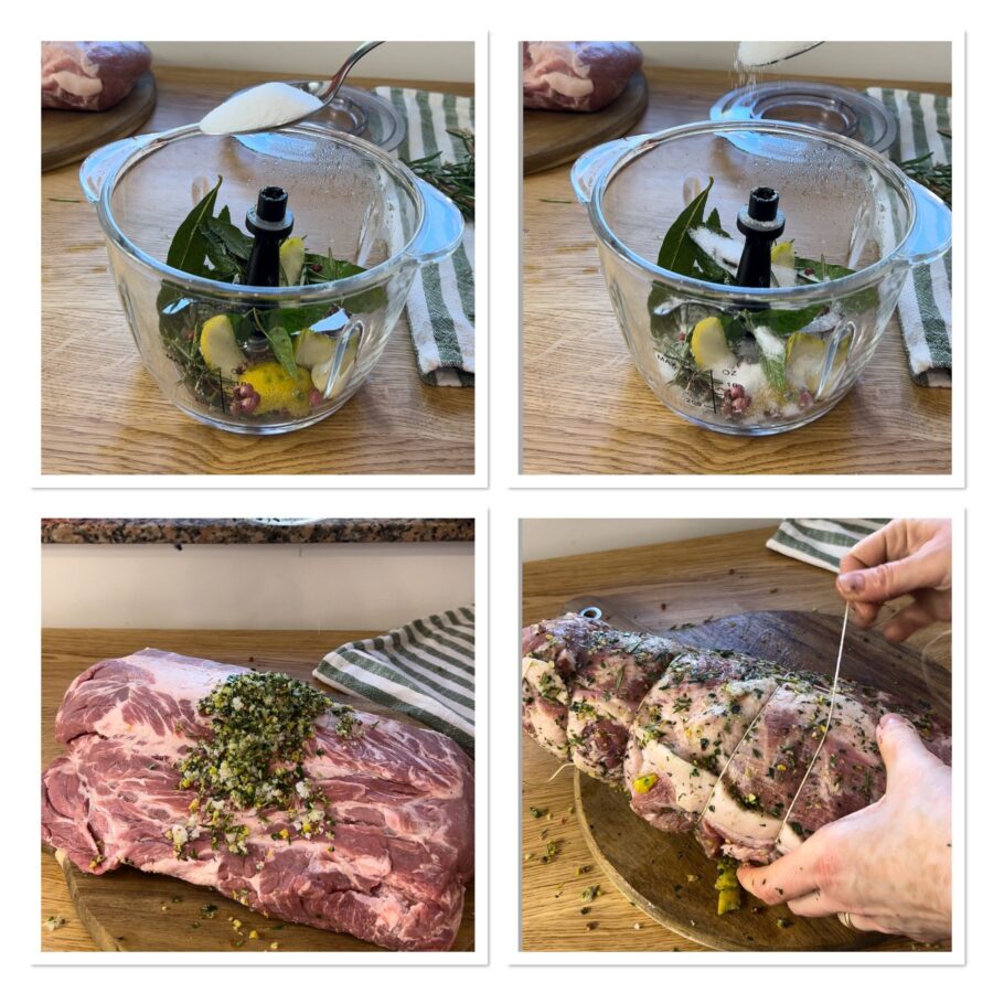 Put all the spices, aromatic herbs, garlic, sugar, salt and lemon zest into the blender jar. Blend until you obtain a homogeneous mix and rub it well over the meat.