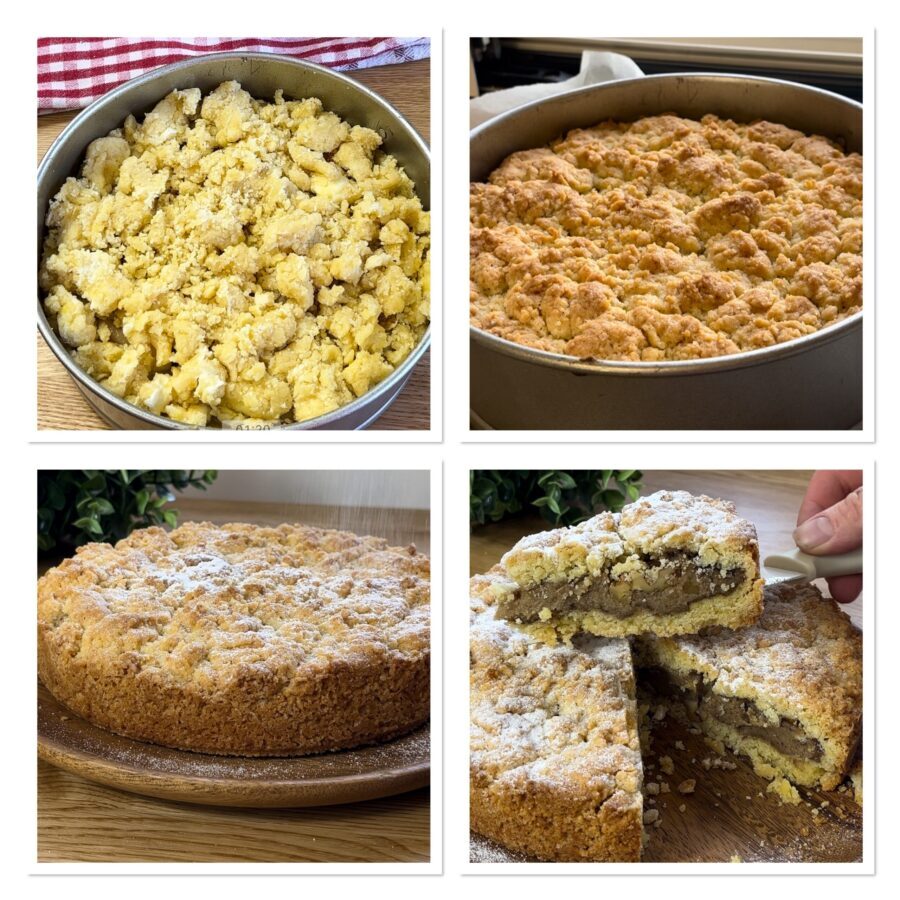 The walnut sbriciolata keeps for up to 3-4 days if covered with a glass cloche.