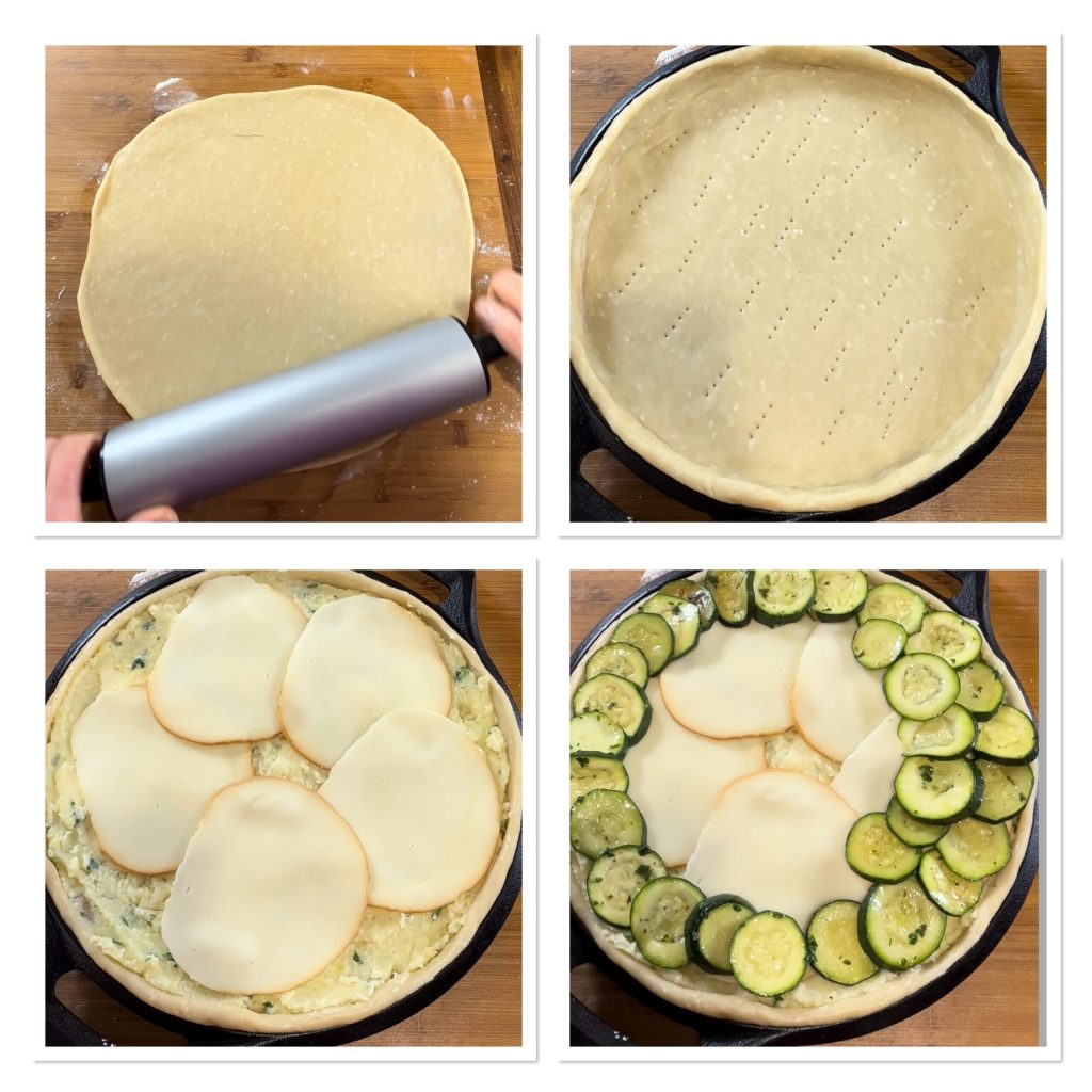 Savory tart with zucchini, potatoes and provola cheese with an oil shortcrust pastry…