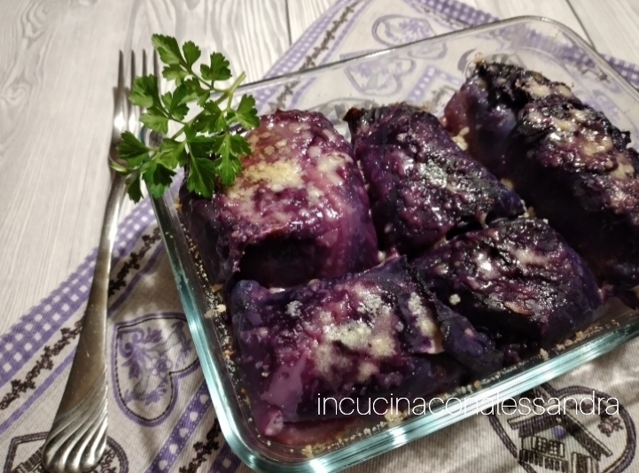 First, remove the leaves and clean them from impurities and wash them well. Place them in a small pot filled with water and blanch them one at a time, just long enough to soften them, otherwise they won’t roll. Wash and clean the carrots and zucchini and cut them into small cubes and blanch them for a few minutes in another small pot with water, meanwhile finely chop the onion and sauté it in a pan with a little oil, when it’s sautéed add the carrots and zucchini and cook for 6/7 minutes. In a bowl, pour the ricotta, start to mix until it becomes creamy, slightly mash the vegetables and add them to the ricotta, mix well, salt and pepper while mixing. Take a cabbage leaf and start stuffing it, close the leaf, put a bit of oil in a baking dish and place the roll inside turning it upside down and keeping it tight, stuff the other leaves and fill the baking dish, when you’re finished sprinkle the rolls with grated Parmesan cheese, add a drizzle of oil and bake in the hot oven and cook for 25 minutes or at least until desired browning.