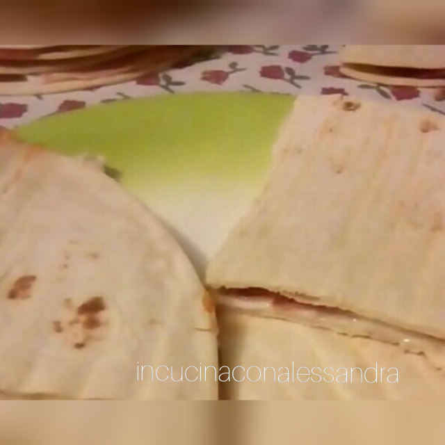 Heat the pan, place the flatbread and cook for about 2 minutes on each side. When done, stack them and fill them hot. Put mozzarella on half of the flatbread with cooked ham, mozzarella with salami, or just cold cuts. Fold in half, place on a grill, and heat the flatbread again.