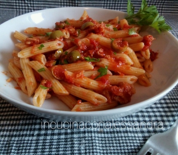 The pasta tomato and olive simple and quick is the classic last-minute recipe for those who have little time to cook or are beginners in the kitchen. Consider that tomato paste or tomato puree and olives are usually always in the house. It’s an easy and quick dish while you put the water and cook the pasta… prepare the sauce.