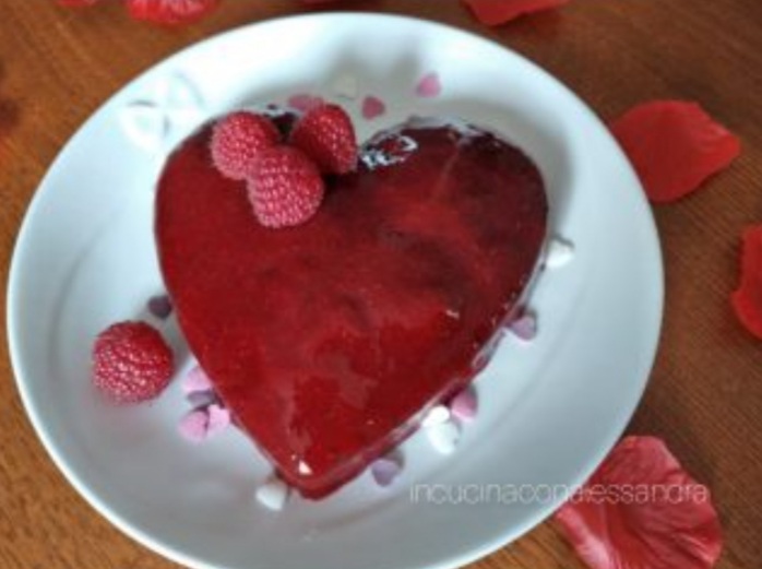 The Valentine’s Day chocolate cake is one of the most classic heart-shaped chocolate desserts, perfect for the celebration of all lovers. Today I propose a cake single-serving filled with raspberry jam, covered with raspberry gelée, very, very delicious. Great for a romantic dinner with your love.
